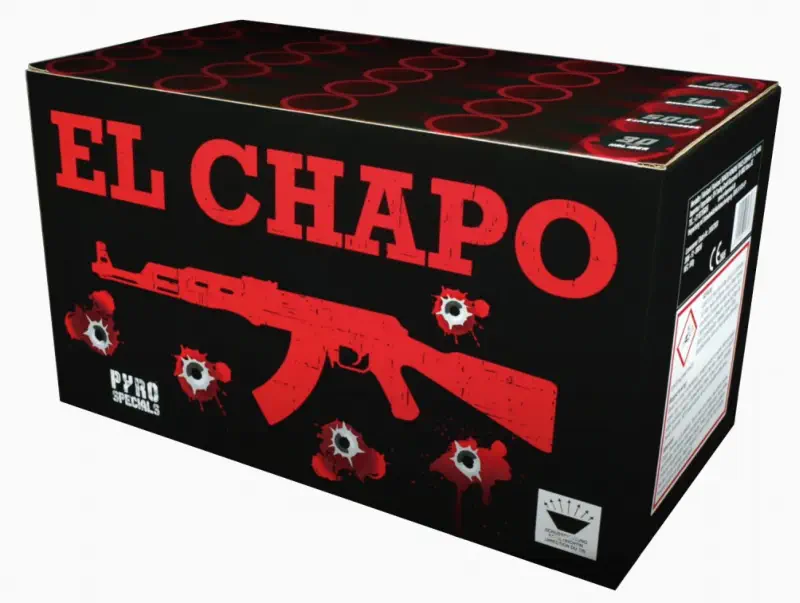 Pyrospecials - El Chapo25-Schuss BatterieEl Chapo von Pyro Specials ist ein 25-Schuss-Fächer mit 500 Gramm. Aufnahmen mit Knistern und verschiedenen Farben. Immer mit 5er-Reihen aufgenommen