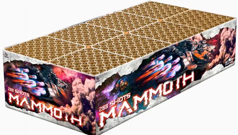 Lesli - Mammoth288 Schuss VerbundDieses Set besteht aus 2 Verbünde welche noch miteinander verbunden/verleitet werden müssen.Kombination aus 2 Compound-Feuerwerken. Ultimative Showbox mit 288 Schüssen im Tempo aufbauend. Maximaler Genuß!Verbund aus den Verbünden Dark Water und Bloodhound